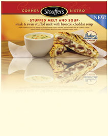 When I fist saw the advertisement on TV for Stouffer's Corner Bistro Stuffed Melts and Soups I knew I had to buy them! Yes, sad to say, TV advertising worked on me. But I am really glad it did! I had a coupon though they weren't on sale I gave in a bought both flavors my grocery store had -